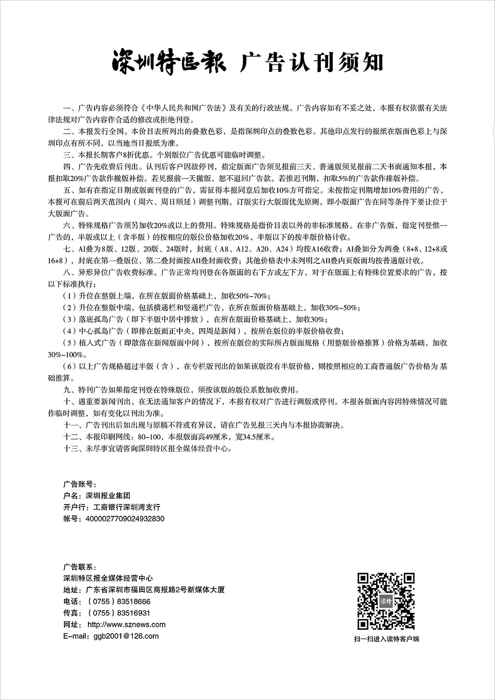 深圳特區(qū)報廣告認刊須知