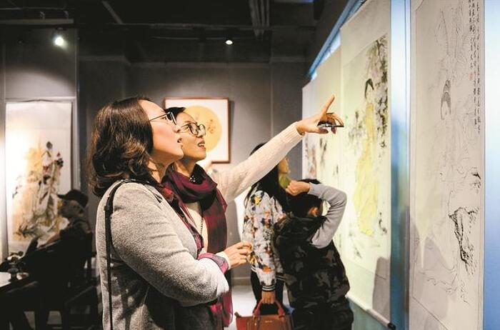 記者在現場看到,展覽精品匯萃不斷,內容豐富,既有山水畫又有人物畫,也涵蓋了工筆、寫意、花鳥多種類型,集中呈現了戴培仁師生的藝術水平與藝術追求。