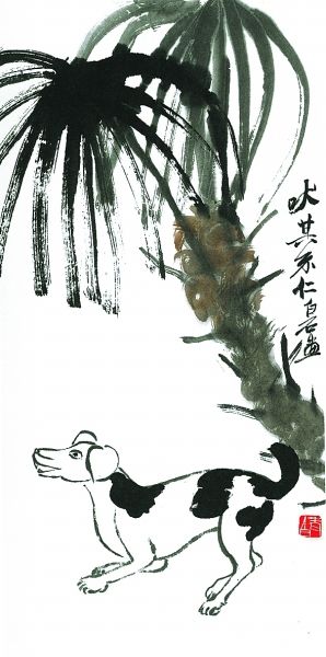 隨著上世紀(jì)九十年代國內(nèi)寵物熱的興起,狗越來越多地進(jìn)入大眾的日常生活,頻頻成為當(dāng)代畫家的表現(xiàn)對(duì)象。當(dāng)代大家黃永玉先生的水墨畫,具有諷刺與幽默的色彩,他畫的狗系列畫作,令人忍俊不禁。著名畫家史國良的西藏風(fēng)情畫中,我們也經(jīng)常能看到狗的身影,如他畫的《八角街上》,畫中靜臥一角的黑狗使整個(gè)畫面平添了許多生活氣息。古今畫狗的名家名作還有很多,實(shí)難一一列舉。狗的忠誠、溫順是人類的最愛,正緣于狗與人類的這種特殊關(guān)系,狗才成為畫家們百畫不厭的題材。
