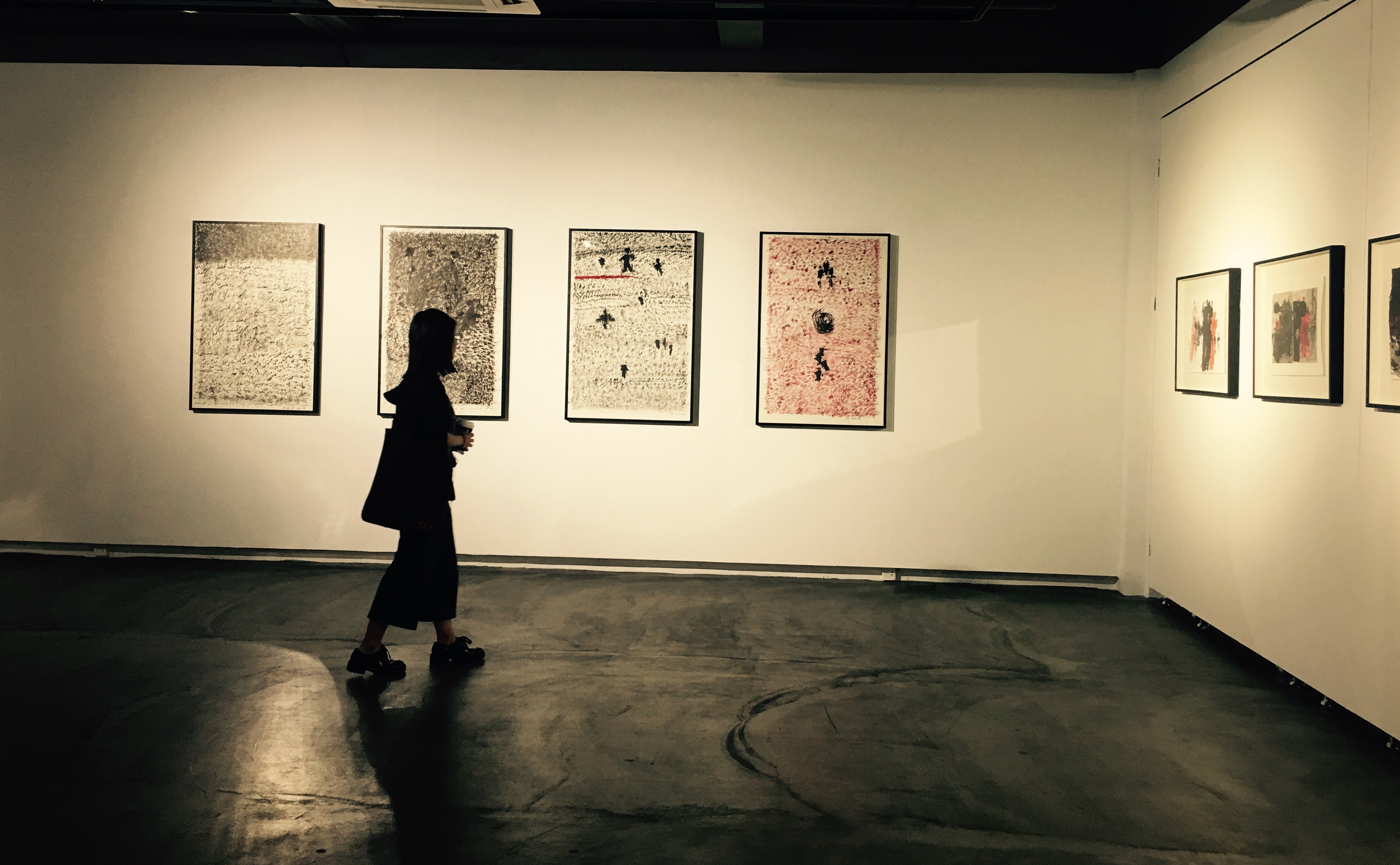 阿多尼斯的畫平靜、深邃,而又暗流涌動(dòng),光芒四射。那些騰躍于拼貼和暈染、抽象和寫意之間的效果,無論有多么率性隨機(jī)以至近乎游戲,都是那么元?dú)獬渑?,韻致飽滿,那么令人既得享酣暢淋漓的解放感,又不由自主地陷入深長(zhǎng)的回味冥思。無論是怎樣的不拘一格,僅就色彩言,黑與紅及其不同的變奏,可以說構(gòu)成了這些作品的基調(diào)。