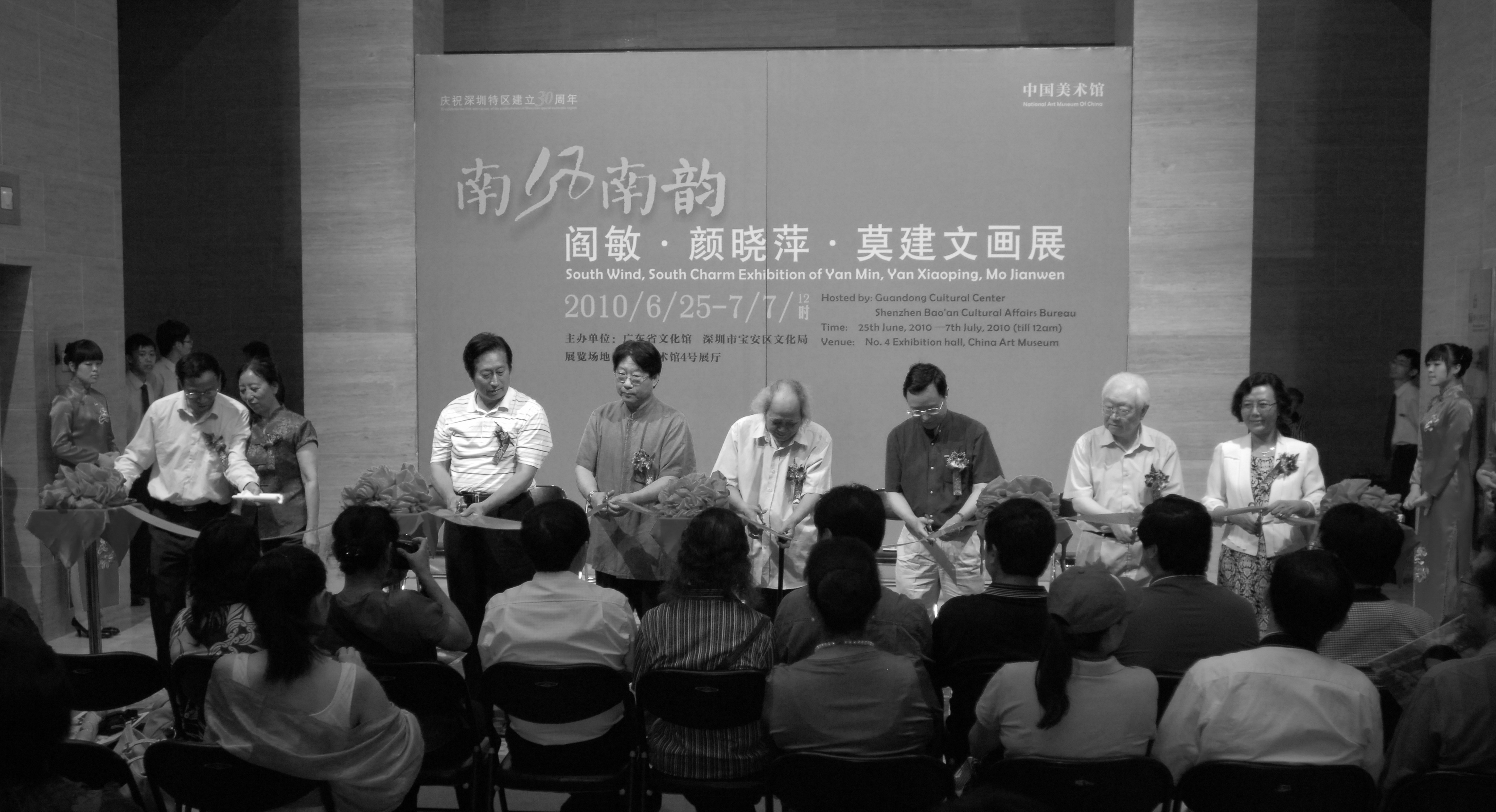 接著,談到寶安美協(xié)的發(fā)展歷程,閻敏說,要感謝美協(xié)前幾屆主席張治平、莫建文、史文集的努力,是他們?yōu)榻裉斓膶毎裁绤f(xié)的發(fā)展打下了堅(jiān)實(shí)的基礎(chǔ)。他介紹說,寶安區(qū)美術(shù)家協(xié)會(huì)成立于1993年8月,組建伊始,會(huì)員40余人,在場(chǎng)地、經(jīng)費(fèi)都不足的情況下,當(dāng)時(shí)的美協(xié)領(lǐng)導(dǎo)硬是創(chuàng)造條件舉辦了一系列的展覽和活動(dòng),出版了《寶安美術(shù)作品集》,擴(kuò)大協(xié)會(huì)的影響。隨后,多次成功舉辦“美麗欲望——寶安女畫家作品邀請(qǐng)展”、“綠色寶安我的家——千米長(zhǎng)卷少兒電視書畫大賽”、“丹青鑄輝煌——寶安美術(shù)大獎(jiǎng)賽”、“走進(jìn)新時(shí)代——寶安美術(shù)大展”、“劉大為、趙振川、方楚雄畫展”、“長(zhǎng)安畫派王西京、王有政、江文湛畫展”、“朱零畫展”、“風(fēng)情盛典——駱文冠訪歐水墨畫展”、“閑與禪——王生才新文人畫展”、“程大利師生山水畫展”、“西安明月軒收藏扇面書畫展”、本土畫家鄧榮斌畫展、吳琳陳永如山水畫展、易芳吉花鳥畫展、羅國(guó)輝張學(xué)秀畫展等諸多展事。這些展覽,在當(dāng)時(shí)都引起了較好的反響,前來觀展、索取畫冊(cè)的人絡(luò)繹不絕??陀^上,豐富了寶安居民的文化生活。尤其是在北京中國(guó)美術(shù)館先后成功地舉辦了寶安區(qū)美術(shù)書法展,莫建文、閻敏、顏曉萍畫展;在上海美術(shù)館、大連美術(shù)館、秦皇島群藝館、湛江博物館舉辦了沿海城市寶安區(qū)美術(shù)作品巡回展;在臺(tái)灣兩次舉辦深圳(寶安)藝術(shù)七人展等。有力的宣傳了寶安的文化藝術(shù)成果,很好地配合了”文化立區(qū)”的需要,收到很好的社會(huì)效果。經(jīng)過十余年的發(fā)展,寶安美協(xié)的會(huì)員由原來的數(shù)十人急劇增加,目前已逾千人,讓原本散落各處獨(dú)自為戰(zhàn)的美術(shù)作者終于有了自己的組織。不僅隊(duì)伍擴(kuò)大了,質(zhì)量也提高了。據(jù)了解,寶安區(qū)美協(xié)現(xiàn)有國(guó)家一級(jí)美術(shù)師7人、中美協(xié)會(huì)員12人、省美協(xié)會(huì)員23人,這在深圳市各區(qū)中是比較好的。閻敏說,不僅會(huì)員擴(kuò)大了,美協(xié)的組織也擴(kuò)大了。從近幾年開始,陸續(xù)成立了行業(yè)分會(huì)、街道分會(huì)。街道分會(huì)已正式掛牌的有石巖、燕羅、新橋、福永,福海、西鄉(xiāng)、沙井、松崗、航城分會(huì)也在籌備之中。行業(yè)協(xié)會(huì)的活動(dòng)中,教育系統(tǒng)發(fā)展勢(shì)頭迅猛,全區(qū)中小學(xué)美術(shù)老師近800人,是協(xié)會(huì)中的主力軍。幾年中舉辦了美術(shù)百校展、教師提名展等已成為品牌,具有很大的影響力。另外,寶安美協(xié)還狠抓了全國(guó)美展的組織工作。如十二屆全國(guó)美展,區(qū)美協(xié)集體選送了19件作品送市美協(xié),全部入選市美展,有8件作品入選省美展,有5件作品入選十二屆全國(guó)美展。