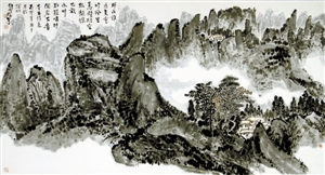 王和平不僅能書寫2尺的大字,還能寫篆書、隸書、行書、草書、楷書,他尤其擅長(zhǎng)以指書寫長(zhǎng)線條幅,還能書寫小到1寸左右的楷書、行書、草書等各種書體。“從他的《黃山系列》,我看到了一個(gè)堅(jiān)強(qiáng)的古典腳步,追尋在范寬的《谿山行旅途》中,沐李唐的《萬壑松風(fēng)圖》,聽馬遠(yuǎn)的《踏歌圖》……一個(gè)精美絕倫的藝術(shù)時(shí)代遠(yuǎn)逝而去,念天地之悠悠,獨(dú)愴然而涕下。留幽幽懷古者,追憶圣賢高士清歌古琴于卷軸中的絕美風(fēng)騷。王和平和我都是這個(gè)幽幽懷古者,追求高貴古典精神的尋賢之人?!边@是評(píng)論家豐川在他的《心有千像,十指墨弦》一文中評(píng)價(jià)王和平的指書所述。