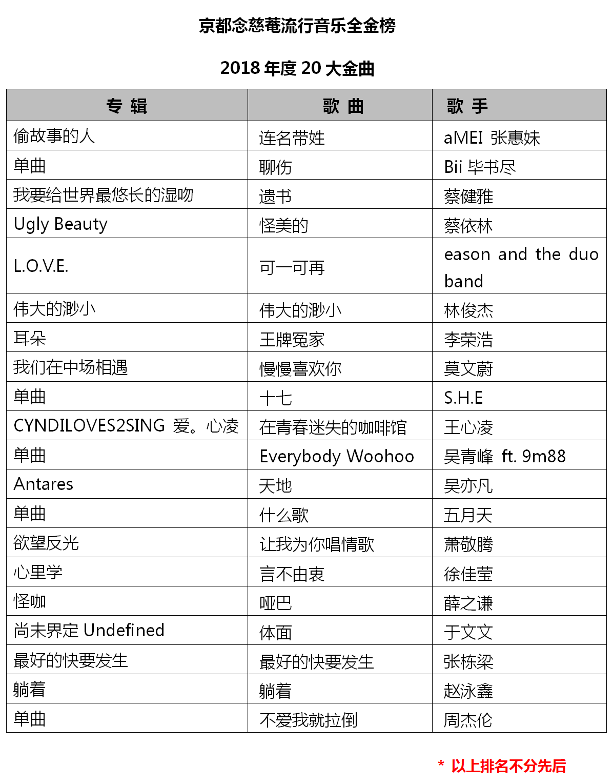“年度最受歡迎專輯”方面,作為華語樂壇中堅力量的李榮浩、林俊杰、薛之謙、蕭敬騰、aMEI張惠妹、張藝興、蔡依林、莫文蔚、陳奕迅、王心凌的實力上榜,又一次用優(yōu)質(zhì)的音樂作品印證了他們舉足輕重的樂壇地位。