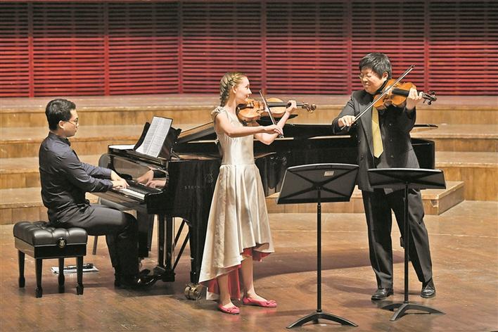 在音樂會的上半部分,艾瑪用小提琴和鋼琴演奏巴赫、舒伯特和斯卡拉蒂的名曲,以及她創(chuàng)作的鋼琴奏鳴曲,并聯(lián)手我國中提琴演奏家、教育家白明,青年鋼琴演奏家沈璐和青年女高音歌唱家陳麗安一齊奏響她創(chuàng)作的三重奏、小提琴協(xié)奏曲,以及歌劇《灰姑娘》選段。值得一提的是,歌劇《灰姑娘》是艾瑪10歲時完成的一部長篇歌劇,并在2016年與祖賓·梅塔大師聯(lián)合制作了該作品的完整版,以更為豐滿的面貌在維也納首演,獲得了觀眾起立鼓掌以及來自國際范圍內(nèi)的好評。