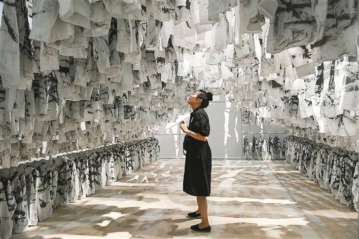 記者在OCAT深圳館展出的“水墨無疆”主題展上看到,從水墨多媒體到燈光裝置,從二維到三維,從靜態(tài)到動態(tài),從平面到立體等多種形式的作品,為觀眾帶來了全新的視覺體驗,開拓出古老中國水墨在當代的各種可能性。在華·美術(shù)館一樓展出的是“攬古爍今”主題展上,策展人吳洪亮邀請了12位藝術(shù)家,試圖以多維的方式呈現(xiàn)他們身在現(xiàn)代、心有傳統(tǒng)的藝術(shù)追求。主題展“筆墨至式”在華·美術(shù)館展出,策展人尚輝邀請國內(nèi)12位獨具筆墨特色的藝術(shù)家展示個性化的作品。