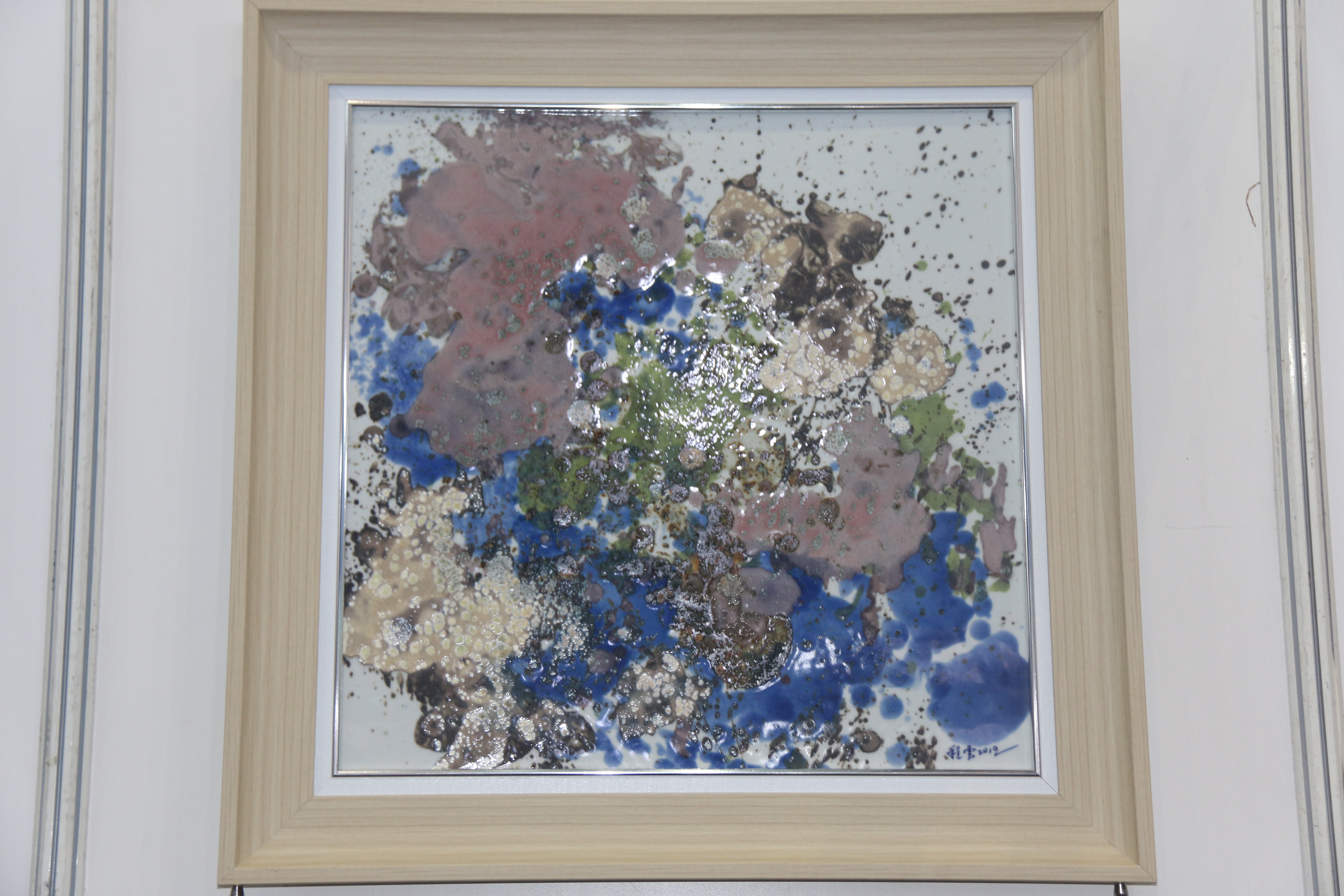 除卻傳統(tǒng)的燒制工藝的不同外,現(xiàn)在的瓷板畫還在傳統(tǒng)藝術(shù)畫法方面吸收借鑒了西方繪畫技藝,尤其是西方印象畫法以及后現(xiàn)代作品對現(xiàn)在的藝術(shù)創(chuàng)作有著深遠的影響。程云教授表示“我們這個新時代中國藝術(shù)就是要在東方文化為主體的情況之下,能夠包容吸收一些西方藝術(shù)元素及繪畫技藝。像高溫顏色釉作品,就是吸收了印象畫派對色彩以及光的理解,然后再配以點、線、面的不同組合最終構(gòu)成一幅畫作。雖然板畫采用了西方的繪畫技藝以及審美理念,但是它所表達的還是中國“天人合一”的思想,它更多的是代表當代的一種藝術(shù)追求以及審美?!?/p>