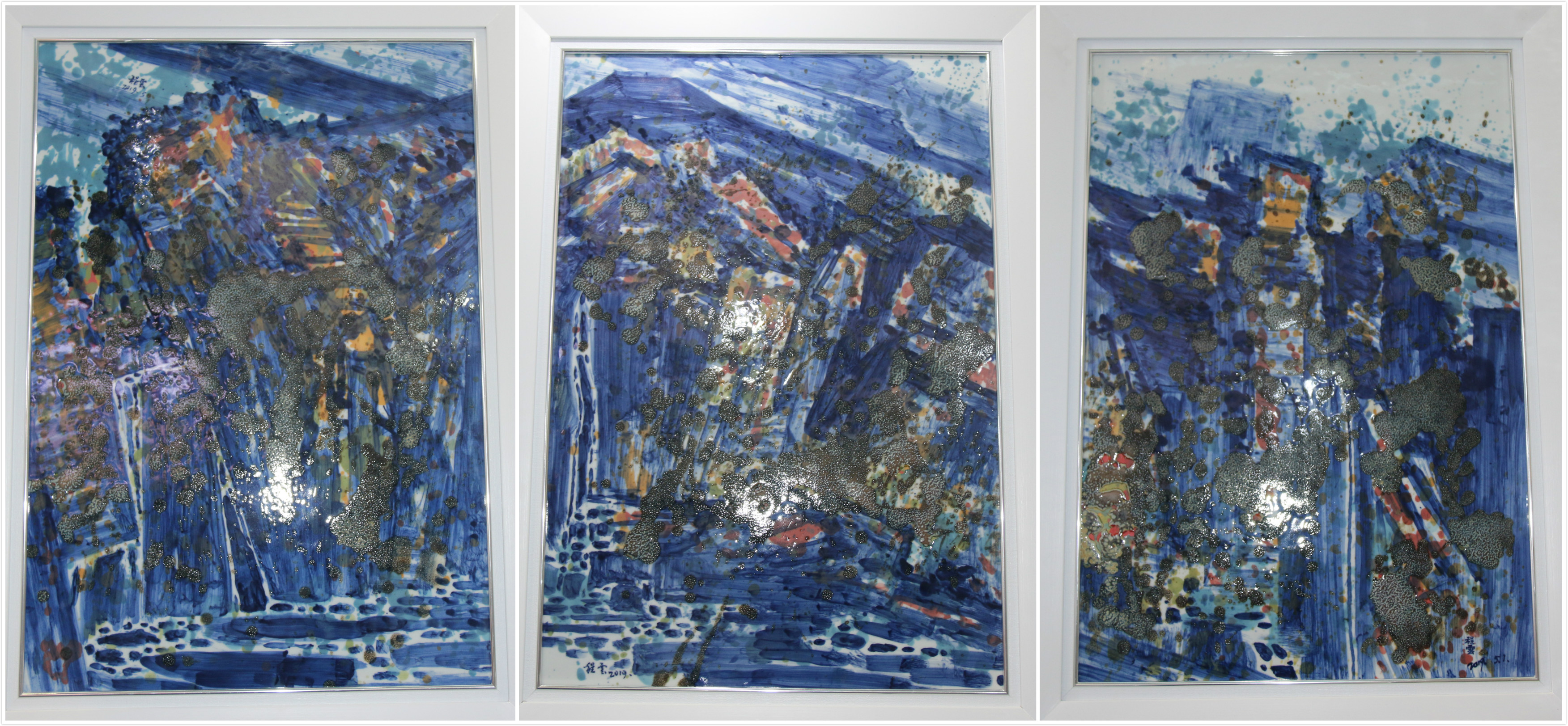 而在此次程云教授展出的作品中,除卻傳統(tǒng)瓷板畫外,一種特別的板畫吸引著記者目光。程云教授介紹到“這是一種新的板畫即“青花+顏色釉”板畫,是一種取青花及顏色釉二者之精華的特殊板畫,既有這青花的明靜素雅,也有著顏色釉的歡快明亮,不同的人,不同的審美都能在這種板畫中找到自己喜歡的元素?!?/p>
