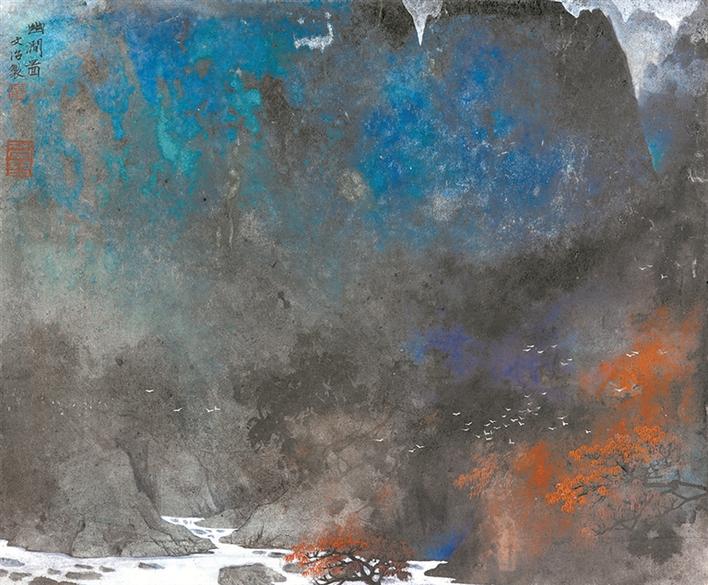 晚年,宋文治開始了以潑彩法入畫,在嚴(yán)謹(jǐn)?shù)姆ǘ戎腥谌肓嗽S多偶發(fā)性的生動(dòng)效果,畫面從此氤氳彌漫、色彩斑斕,其個(gè)人風(fēng)格亦發(fā)生了較大變化,使“宋家山水”的面貌進(jìn)一步得到確立。此次展覽共展出宋文治所創(chuàng)作的四十多件精品,這些作品主要展現(xiàn)宋文治藝術(shù)從“中年出新”到“老年求變”的創(chuàng)作軌跡及藝術(shù)面貌。