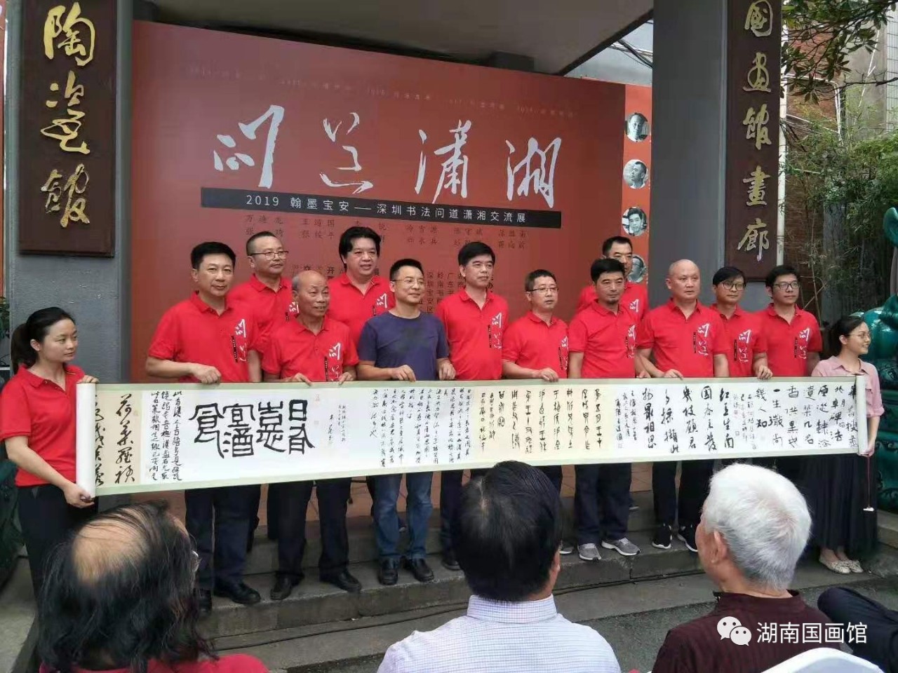 此次“問道瀟湘”是由深圳寶安書社、深圳寶安公共文化服務(wù)中心策劃的品牌活動,是繼問道江右、問道京華、問道周秦、問道河洛、問道燕趙之后的第六次“問道”活動,旨在帶上作品,通過展覽和交流,虛心請教,增進交流。展覽展出了王道國、萬迪龍、陳勝南、李銳、張琦、張綏平、鄭永兵、冷雪源、周志群、陳守斌、彭雙龍、蔣向前12位深圳書法家的100多幅書法精品,涵蓋篆、隸、楷、行、草、篆刻,氣象正大、功力深厚、風(fēng)格多樣、各有專長,既有切合時政的政治主題,也有自撰詩詞聯(lián)句和題跋作品;既有湖湘歷史題材佳作,也有深圳本土題材作品;既有丈二巨制,又有平尺小品。展覽的亮點是主展廳的九件丈二巨幅作品,從《不忘初心》到《春天的故事》,從《岳陽樓記》到王冕《墨梅》,筆力沉雄,氣象博大,受到與會專家和觀眾的好評!