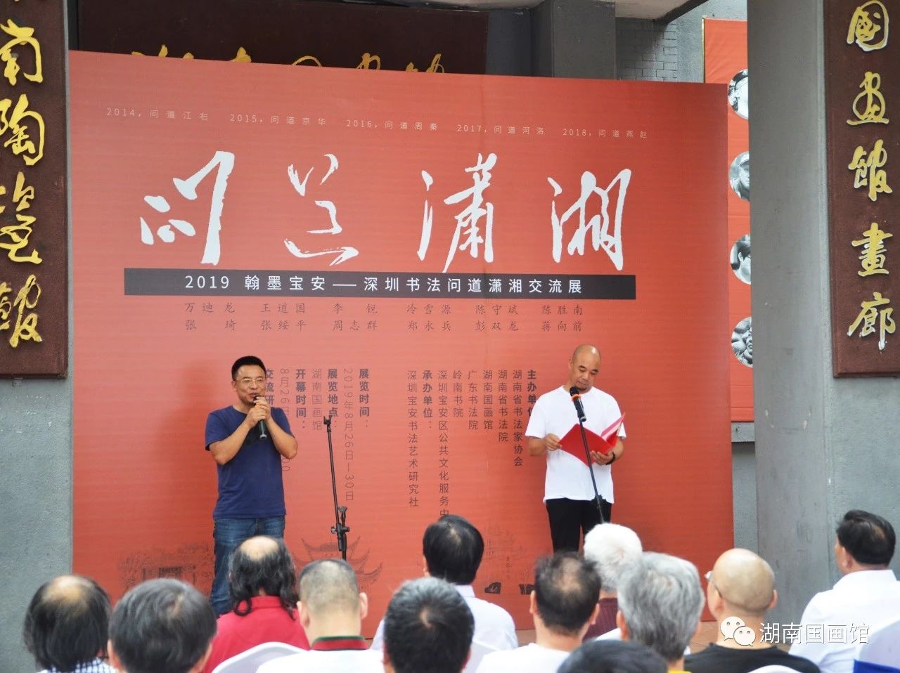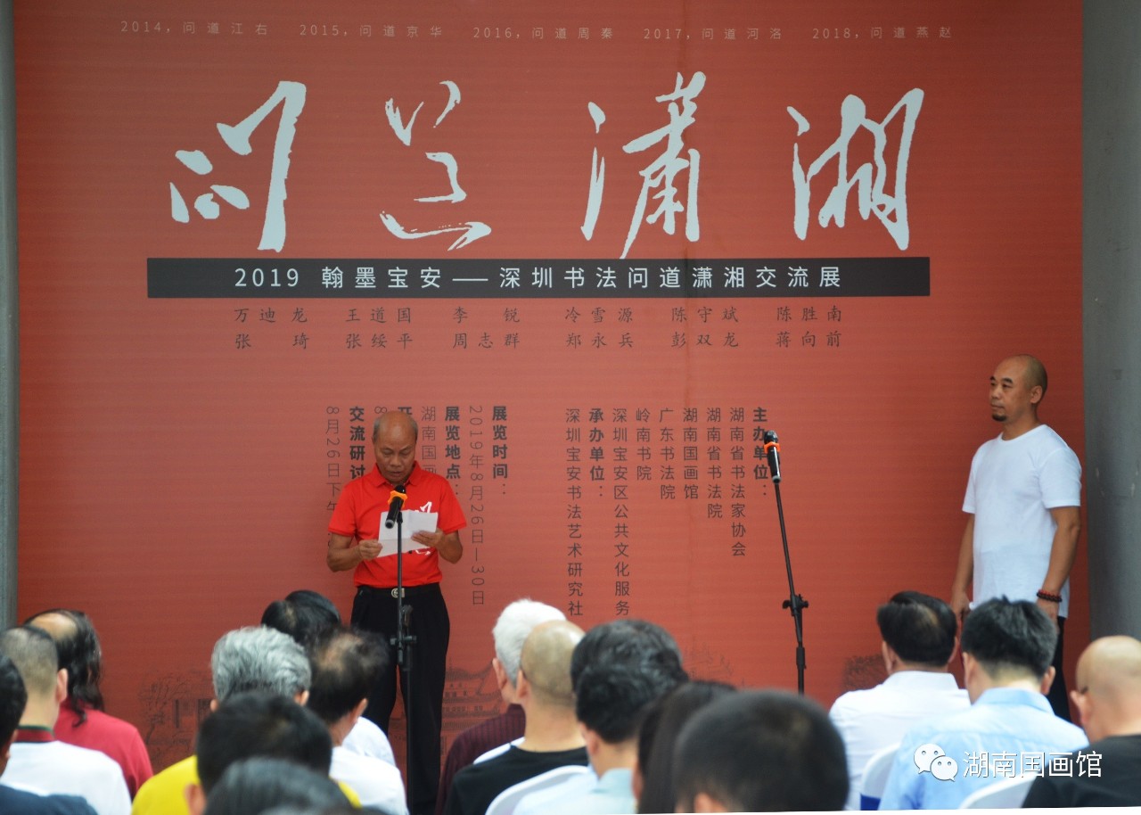 開幕式由湖南省書法家協(xié)會副主席兼秘書長胡紫桂主持,湖南省文化和旅游廳副廳長、湖南省書協(xié)主席鄢福初,湖南國畫館負責(zé)人黃作,嶺南書院院長、深圳寶安書社社長張琦分別致辭。