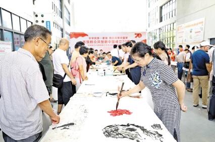 寶安日報2019年9月19日訊 9月18日下午,以“中華民族一家親,同心共筑中國夢——各族群眾共賀新中國成立70周年”為主題的書畫藝術筆會在龍華文化藝術中心舉行,80多位書畫名家現(xiàn)場揮毫,盡展中華民族文化藝術瑰寶魅力。