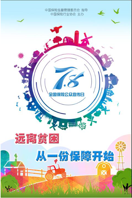 以7·8Logo為中心的光圈,周邊是日常生活的剪影,寓意著保險(xiǎn)似陽(yáng)光雨露,惠及人民群眾生產(chǎn)、生活的方方面面,反映了保險(xiǎn)扶貧精準(zhǔn)服務(wù)、缺口補(bǔ)位的功能。