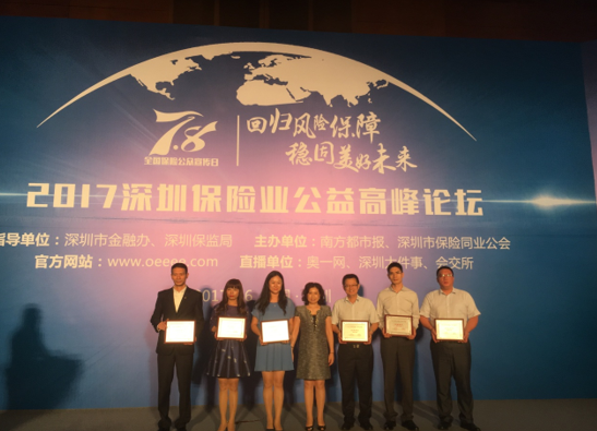 7月6日,由深圳市金融辦、深圳保監(jiān)局指導(dǎo),深圳市保險(xiǎn)同業(yè)公會(huì)和南方都市報(bào)聯(lián)合主辦的“2017深圳保險(xiǎn)業(yè)公益高峰論壇”在深圳五洲賓館召開(kāi),太平財(cái)險(xiǎn)深圳分公司榮獲“2017深圳保險(xiǎn)業(yè)精準(zhǔn)扶貧先進(jìn)單位”稱號(hào)。
