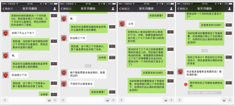 實際償還數(shù)與當初協(xié)商數(shù)不符,何先生聯(lián)系到當初為自己辦理貸款的捷信業(yè)務員,但是對方稱自己提醒過何先生有服務費,并要求何先生去捷信總公司調(diào)取錄音,但是當何先生提出調(diào)取錄音時,對方卻將他微信拉黑了。