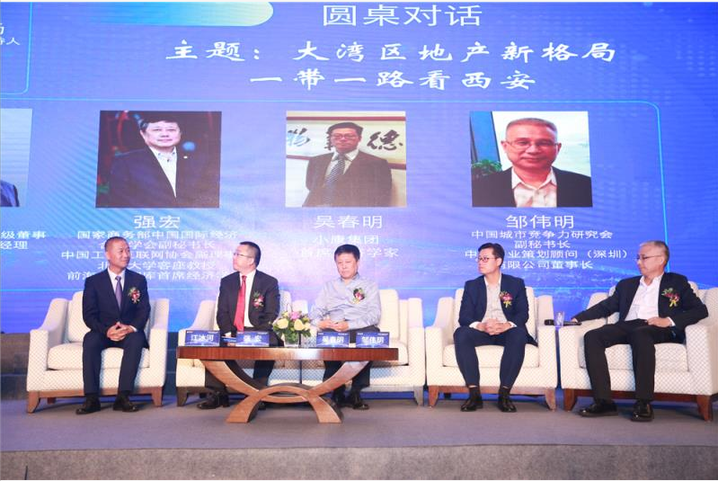 圓桌論壇環(huán)節(jié),戴德梁行高級(jí)董事、粵港澳大灣區(qū)業(yè)務(wù)總經(jīng)理江冰河、商務(wù)部中國(guó)國(guó)際經(jīng)濟(jì)合作學(xué)會(huì)副秘書(shū)長(zhǎng)強(qiáng)宏、小康集團(tuán)董事長(zhǎng)陶三定、小康集團(tuán)首席經(jīng)濟(jì)學(xué)家吳春明、中國(guó)城市競(jìng)爭(zhēng)力研究會(huì)副秘書(shū)長(zhǎng)、中城產(chǎn)業(yè)策劃顧問(wèn)(深圳)有限公司董事長(zhǎng) 鄒偉明等同臺(tái)論道,分別圍繞大灣區(qū)建設(shè)與城市更新,一帶一路看西安等話題,論劍房地產(chǎn)未來(lái)發(fā)展。