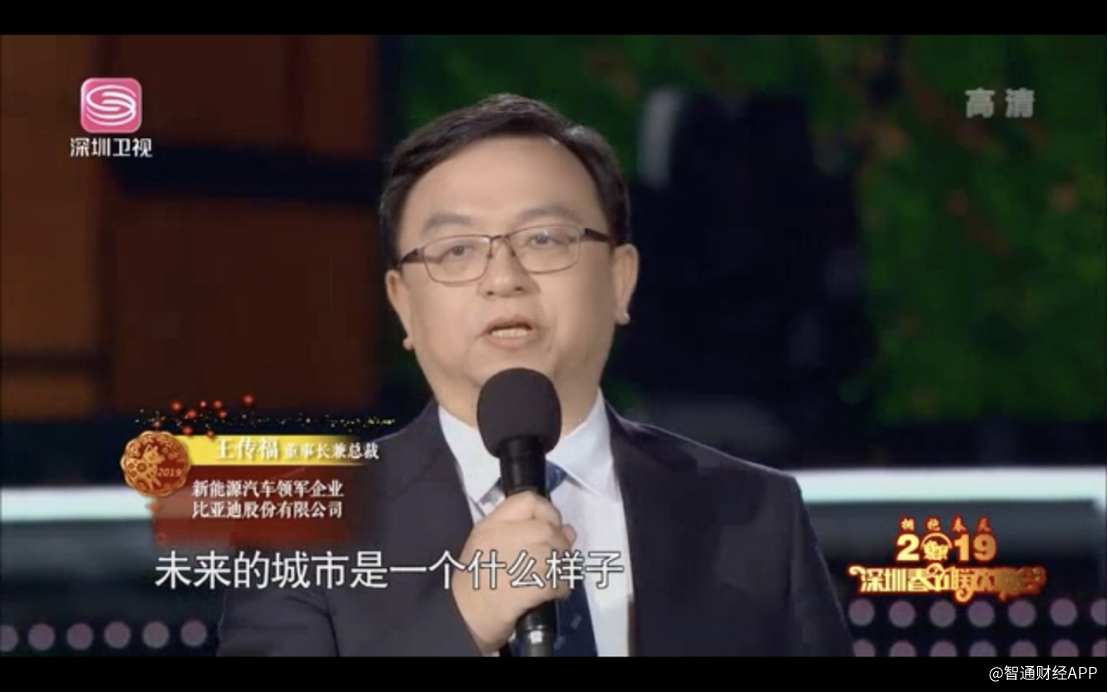 王傳福在2019年深圳春晚發(fā)表以“祖國?深圳?我們”為主題的講話