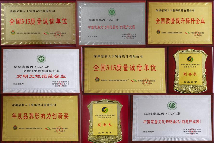 豪裝天下裝飾集團所獲榮譽資質