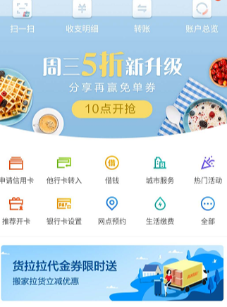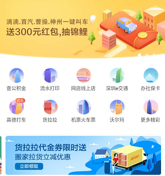 招行 A PP首頁、城市服務頁截圖