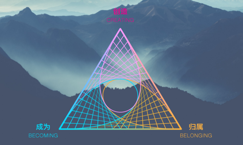 在這兩個維度的基礎(chǔ)上,陳瑋教授增加了Creating“創(chuàng)造”這個維度。Creating“創(chuàng)造”,是我給這個世界留下的精神和物質(zhì)遺產(chǎn),世界因你而變。在成為和歸屬完成之后,人生的使命是創(chuàng)造,是我們給這個世界帶來的更新與升級。當我們問,未來會是什么樣?我們真正要問的是:我,將為這個世界創(chuàng)造什么?