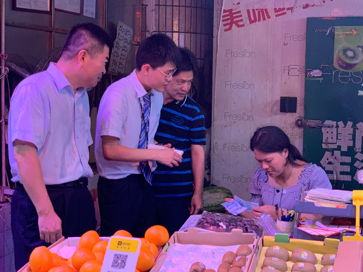 為優(yōu)化現(xiàn)金流通環(huán)境,提升現(xiàn)金服務(wù)水平,積極落實(shí)普惠金融政策與現(xiàn)金服務(wù)示范區(qū)的引領(lǐng)示范作用,在2019年版第五套人民幣發(fā)行之際,深圳建行梅景支行攜分行反假貨幣專家團(tuán)隊(duì)于2019年9月5日進(jìn)駐福田梅林農(nóng)批市場(chǎng)開展2019年版第五套人民幣專項(xiàng)宣傳活動(dòng)。