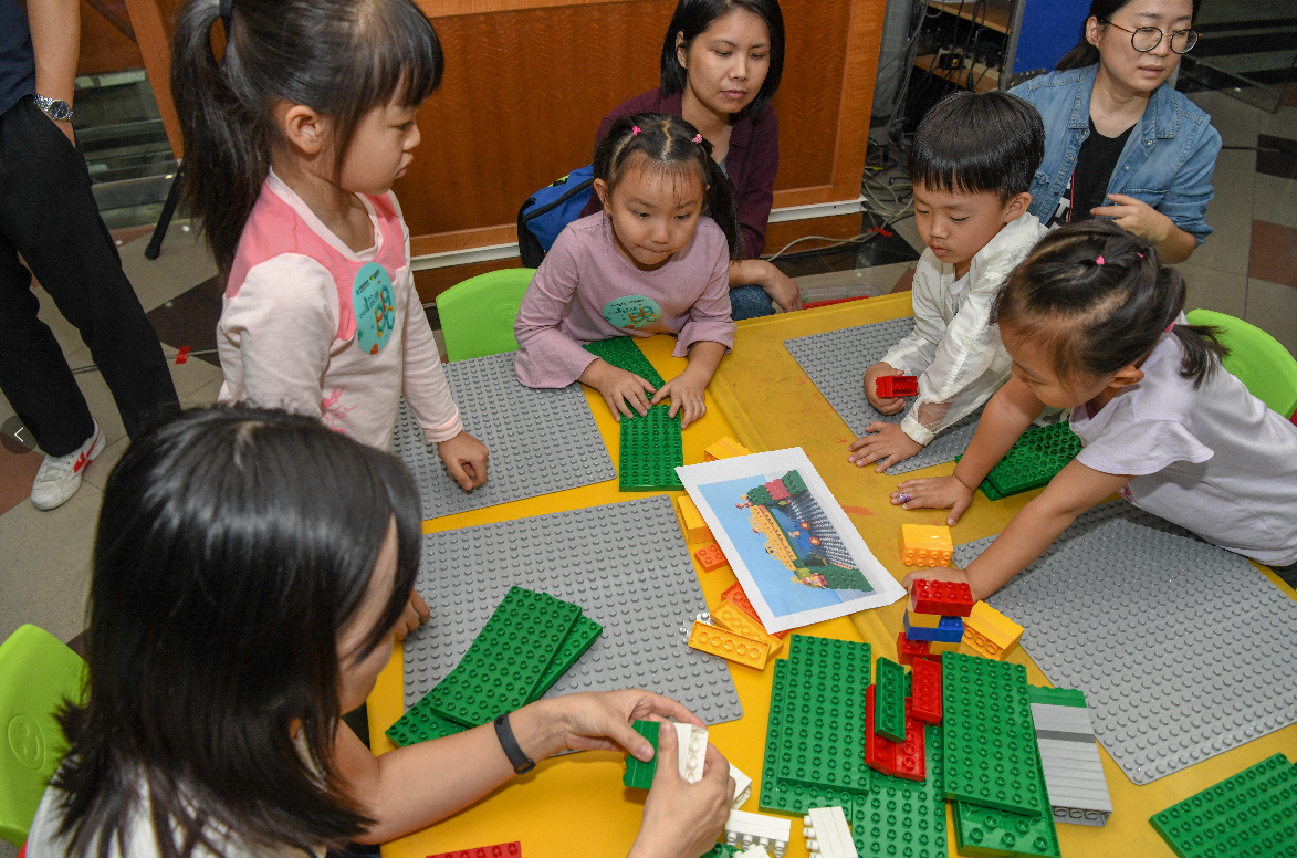 認(rèn)真聽完講解后,“小小建筑師”們便各自拿著設(shè)計藍(lán)圖,發(fā)揮想象,開始了今天的DIY之旅?!暗鬃詈昧?,上面的顏色是紅黃交替的……”活動現(xiàn)場,一位小朋友進(jìn)度很快,已經(jīng)搭建過半,他一邊看著圖紙,一邊構(gòu)思著下一步。在被問及為什么底座缺失了幾塊積木時,這位“小小建筑師”得意的告訴記者:“我這個塔樓可是建在礁石上的,你見過哪一塊礁石是整整齊齊的呀?”