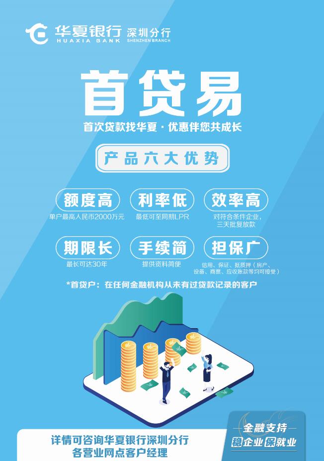 為滿足廣大中小微民營企業(yè)的資金需求,加大信貸投放精準(zhǔn)滴灌,華夏銀行創(chuàng)新推出“首貸易”產(chǎn)品,向首貸戶(是指在任何金融機(jī)構(gòu)從未有過貸款記錄的客戶)承諾“首次貸款找華夏,優(yōu)惠伴您共成長”的全方面、定制金融服務(wù)?!笆踪J易”產(chǎn)品具有“六大突出優(yōu)勢”,額度高、利率低、效率高、期限長、手續(xù)簡、擔(dān)保廣。