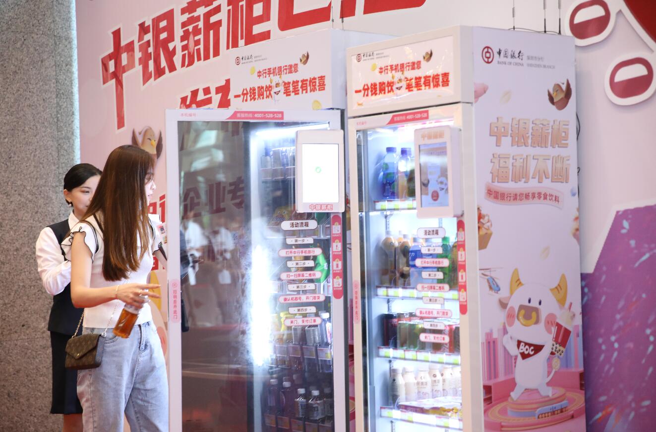 現(xiàn)場雙方共同為“中銀薪柜”2.0版本揭幕。該平臺作為中行代發(fā)薪企業(yè)員工專屬定制的智能貨柜,不僅有效解決企業(yè)員工快速早晚餐、下午茶和加班餐需求,還可疊加中行福利優(yōu)惠,提升了發(fā)薪企業(yè)員工幸福感。“中銀薪柜”2.0版本具有智能化、方便快捷、用戶體驗(yàn)好等特點(diǎn),該平臺從外觀展示和客戶支付流程,實(shí)現(xiàn)了專屬定制和便捷服務(wù)。支付鏈路采用了先進(jìn)的AI智能商品識別算法,用戶通過中國銀行手機(jī)銀行掃碼開門后自由選擇商品,關(guān)閉柜門自動(dòng)識別商品和數(shù)量并生成訂單結(jié)算,首次采用了手機(jī)銀行訂單模式的支付方式。
