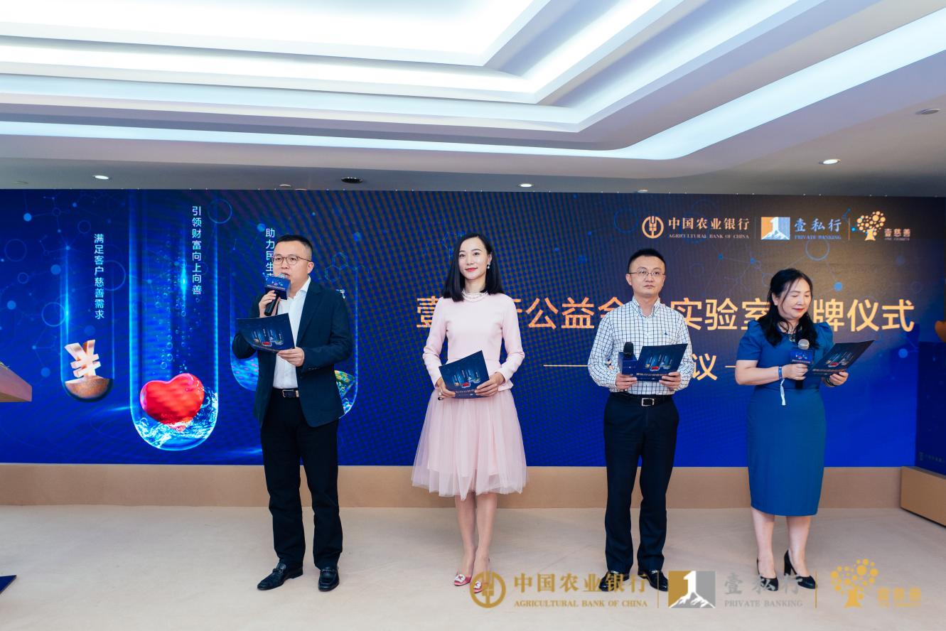 深圳新聞網(wǎng)2021年9月17日訊 (記者 朱琳 翁瑞峰 通訊員 李嘉 黃彤)9月16日下午,由中國(guó)農(nóng)業(yè)銀行私人銀行部、深圳市創(chuàng)新企業(yè)社會(huì)責(zé)任促進(jìn)中心共同主辦的“壹私行公益金融實(shí)驗(yàn)室”揭牌儀式在中國(guó)農(nóng)業(yè)銀行深圳市分行私人銀行部舉行。中國(guó)農(nóng)業(yè)銀行總行私人銀行部負(fù)責(zé)人黃潞,深圳市社會(huì)組織管理局副局長(zhǎng)白凌,深圳市工商聯(lián)黨組成員、專職副主席馮德崇,原深圳市政協(xié)副主席姚欣耀,原銀監(jiān)會(huì)非銀司司長(zhǎng)高傳捷,中國(guó)農(nóng)業(yè)銀行深圳市分行黨委委員、副行長(zhǎng)王國(guó)彪、魏秉全,中國(guó)社科院教授、全國(guó)知名慈善專家楊團(tuán),深圳市慈善會(huì)執(zhí)行副會(huì)長(zhǎng)房濤,深圳市創(chuàng)新企業(yè)社會(huì)責(zé)任促進(jìn)中心秘書(shū)長(zhǎng)曾亞琳以及公益基金會(huì)、商協(xié)會(huì)嘉賓代表出席。