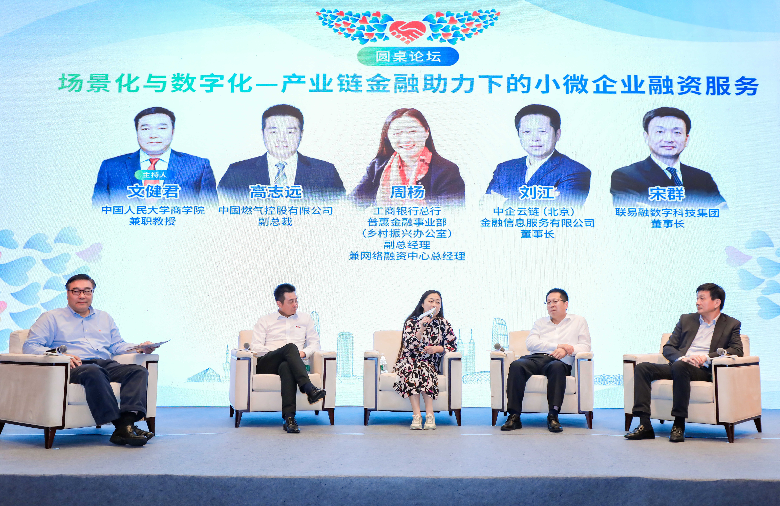 在論壇對話環(huán)節(jié),工行總行普惠金融事業(yè)部副總經(jīng)理兼網(wǎng)絡(luò)融資中心總經(jīng)理周楊、核心企業(yè)代表中國燃氣控股有限公司副總裁高志遠、供應(yīng)鏈服務(wù)機構(gòu)代表中企云鏈(北京)金融信息服務(wù)有限公司董事長劉江和聯(lián)易融數(shù)字科技集團董事長宋群共同探討了如何以融合和創(chuàng)新方式,通過產(chǎn)業(yè)鏈金融助力小微企業(yè)融資服務(wù),互相交換在產(chǎn)業(yè)鏈金融發(fā)展方面的經(jīng)驗和智慧。