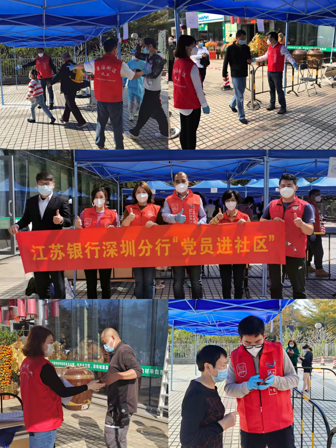 在該行黨委統(tǒng)一部署及有效組織下,江蘇銀行深圳分行營業(yè)部、福田支行、南山支行、前海支行等基層黨組織快速響應(yīng),立即組建起由黨支部書記、支行行長帶頭的志愿先鋒隊。2月中旬起,江蘇銀行深圳分行志愿先鋒隊忙碌在福田海濱社區(qū)、南山蔚藍海岸社區(qū)、高新區(qū)社區(qū)等多個核酸檢測點,在核酸采樣現(xiàn)場提醒民眾查驗健康碼、協(xié)助秩序維護、做好防疫宣傳、協(xié)助搬運物資、進行核酸引導(dǎo)、解答防疫問題。與社區(qū)醫(yī)護人員一起奮斗在抗疫第一線,用行動踐行初心,用汗水書寫擔(dān)當(dāng),用責(zé)任與堅守共筑抗疫“紅色防線”。