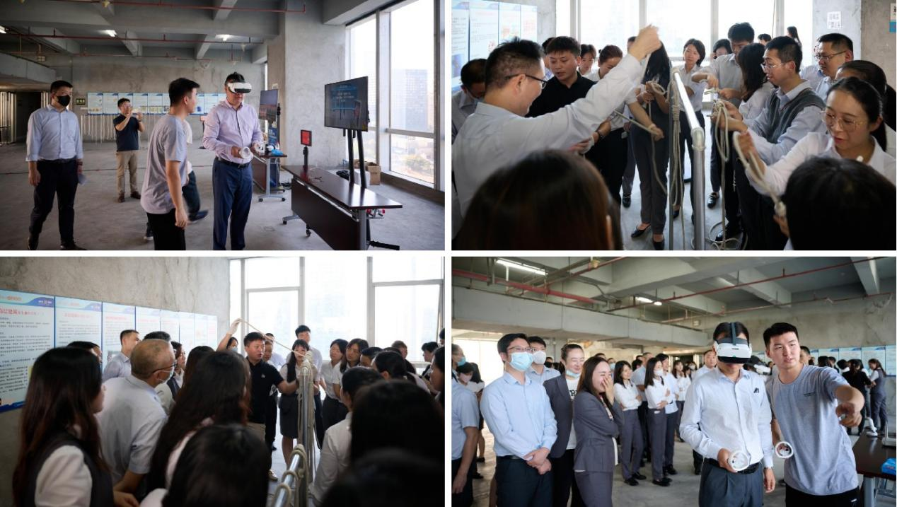 在完成避難集結(jié)后,廣發(fā)銀行深圳分行組織現(xiàn)場(chǎng)員工開(kāi)展消防知識(shí)培訓(xùn)。培訓(xùn)主要采用理論知識(shí)與實(shí)踐操作相結(jié)合的模式,將活動(dòng)現(xiàn)場(chǎng)劃分為VR虛擬安全場(chǎng)景、消防逃生繩結(jié)、消防安全逃生屋、滅火器材及防毒面具等體驗(yàn)區(qū),每個(gè)區(qū)域均安排了專(zhuān)業(yè)講師講解相關(guān)知識(shí),并協(xié)助員工操作和使用相關(guān)器材設(shè)備。員工們通過(guò)親身參與,學(xué)習(xí)了消防器材使用方法和高層火災(zāi)逃生技能。