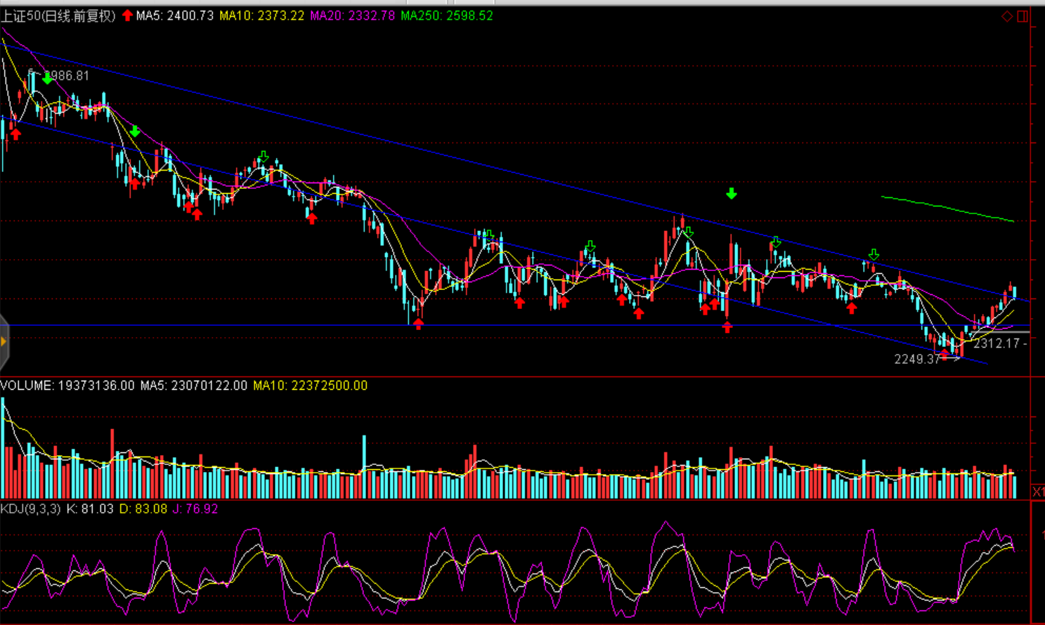 周二滬深股市整體呈現(xiàn)出單邊下跌態(tài)勢。兩市開盤后一路震蕩走低,三大指數(shù)跌幅均超1%,日線長中短期均線均告失守。市場成交量繼續(xù)萎縮,兩市合計(jì)成交僅有2786億元,呈現(xiàn)價(jià)跌量縮態(tài)勢。