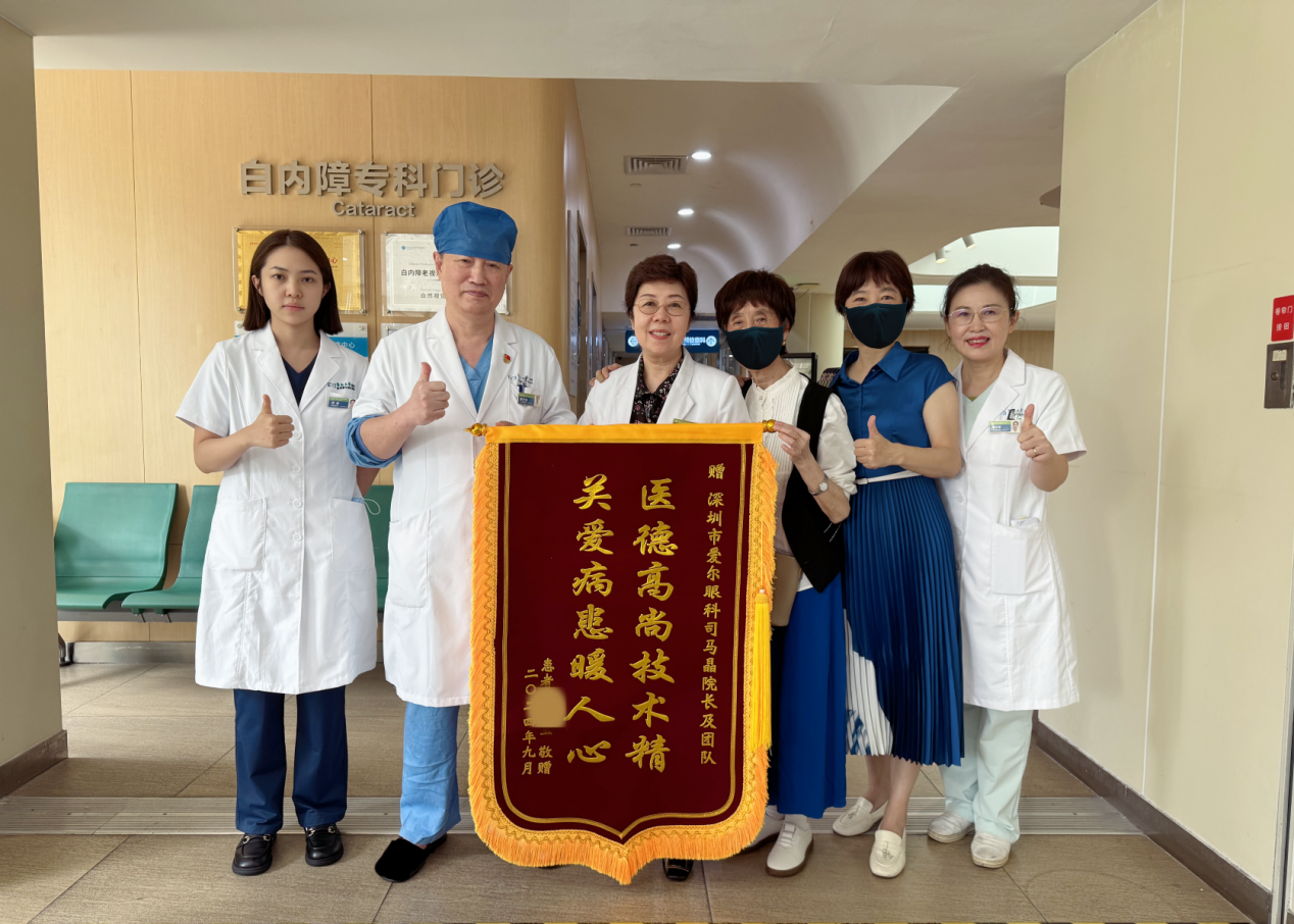 完成手術的劉奶奶心情無比輕松,坐在輪椅上被推出手術室時,她向醫(yī)護人員豎起了大拇指。兩天后,劉奶奶又順利進行了另一只眼的手術。通過飛秒激光輔助白內障手術,一次性解決了她的白內障、遠視、散光及老視等多種眼病困擾。術后,她為醫(yī)護人員送來錦旗,激動地抱著司馬晶教授道謝:“感謝您治好了我的眼睛,我現在看遠看近都很清楚,真后悔沒有早點做這個手術!”