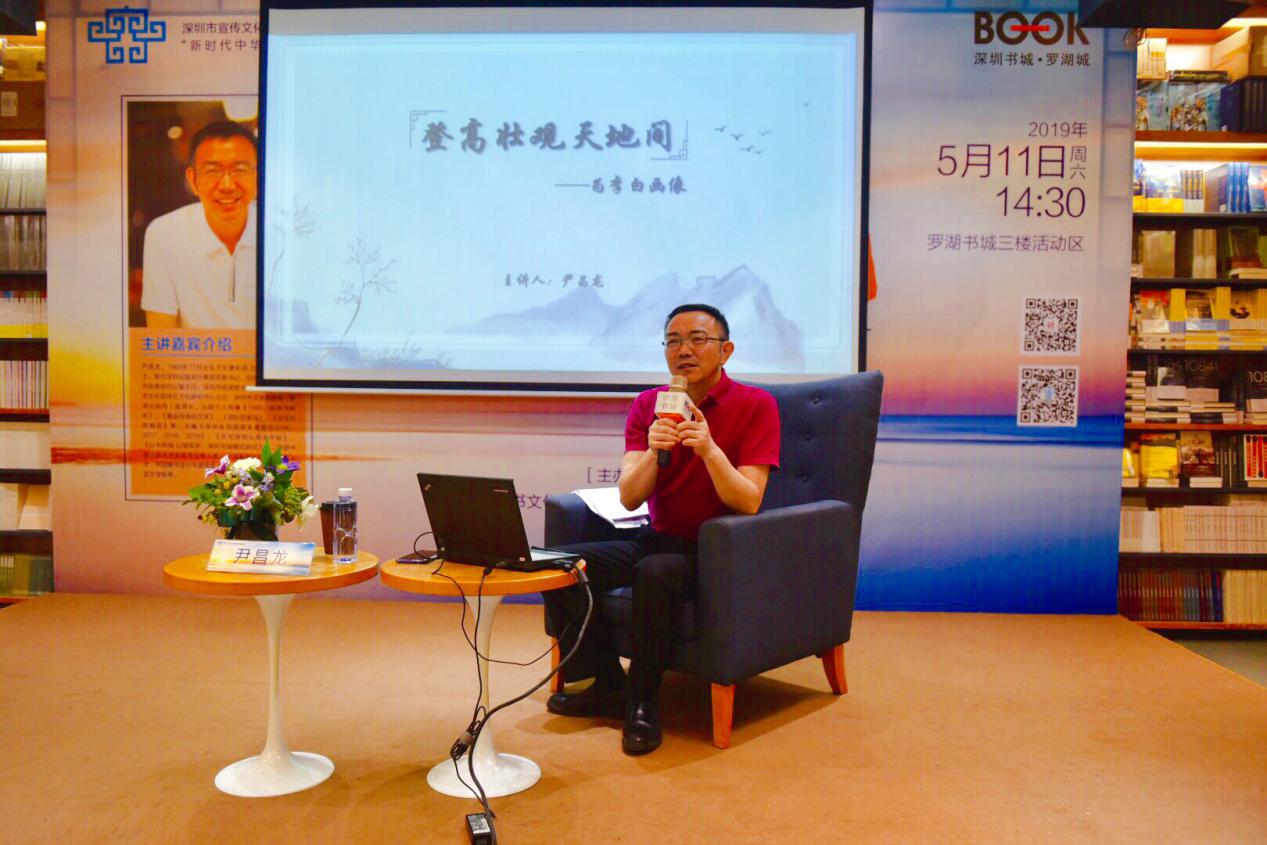 5月11日下午,“新時代中華優(yōu)秀傳統(tǒng)文化進社區(qū)”項目首場講座之“登高壯觀天地間——為李白畫像”在羅湖書城三樓開展。本次活動由深圳市壹書文化傳播有限責任公司、深圳書城羅湖城主辦,特邀深圳出版發(fā)行集團黨委書記、總經(jīng)理尹昌龍博士擔任主講嘉賓,解讀多面詩仙李白,為聽眾奉上一場難得的文學盛宴。講座還未開始,現(xiàn)場已座無虛席,過道上站滿了李白迷,聽眾們早早就來靜候著了。