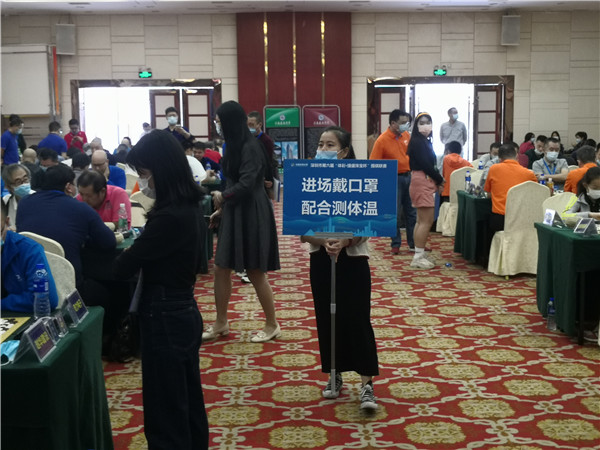 本屆聯(lián)賽在仍在抗疫的形勢(shì)下來(lái)之不易,賽事組委會(huì)非常珍惜,在防疫方面下了一番功夫。本次賽事執(zhí)行主任、著名國(guó)手梁偉棠九段介紹說(shuō):組委會(huì)在本次賽事《補(bǔ)充規(guī)定》中要求“本屆賽事因?yàn)橐咔榉揽匦枰w人員必須佩戴口罩,掃碼入場(chǎng),并全程不得摘下口罩;體溫過(guò)高者謝絕入場(chǎng)”。記者觀察到,現(xiàn)場(chǎng)的防疫落實(shí)還是比較到位的,一是在賽場(chǎng)入口布置了三人團(tuán)隊(duì),加強(qiáng)了掃碼、體溫檢測(cè)、提醒大家戴口罩,凡是入場(chǎng)的隊(duì)員、工作人員以及觀戰(zhàn)的圍棋愛好者,都必須進(jìn)行體溫檢測(cè),符合正常體溫的方可入場(chǎng)參賽;二是要求參賽隊(duì)員和工作人員戴口罩;三是加強(qiáng)賽場(chǎng)巡查,對(duì)沒(méi)有自覺(jué)戴口罩的在場(chǎng)人員進(jìn)行勸導(dǎo)。總體來(lái)說(shuō),賽場(chǎng)防疫秩序良好。