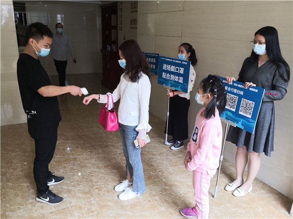 賽場(chǎng)入口處的體溫檢測(cè)。