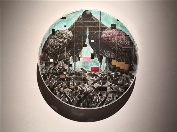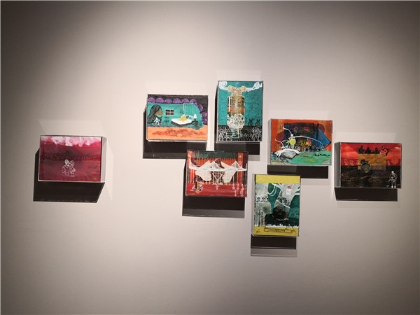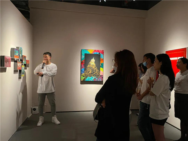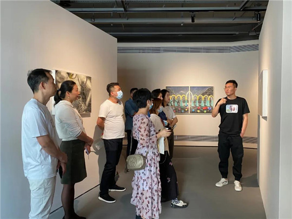 聯(lián)展現(xiàn)場三位作者向參觀者介紹創(chuàng)作經(jīng)歷及畫作意蘊(yùn)。