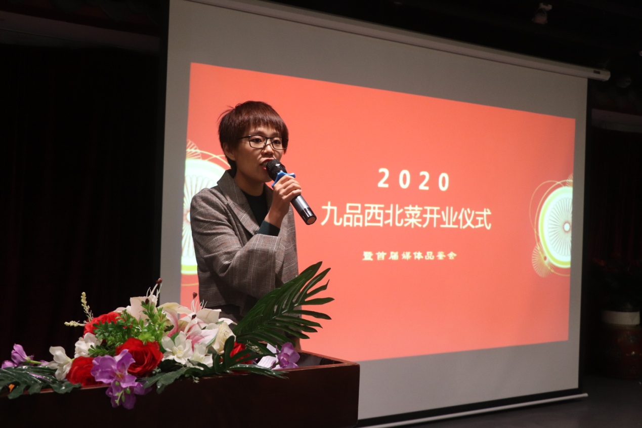 本屆媒體品鑒會(huì)由“九品西北菜”創(chuàng)始人兼出品總監(jiān)賈淑萍女士歡迎致辭,并且分享了關(guān)于品牌創(chuàng)始背后的故事?!熬牌肺鞅辈恕笔莾A金河建材集團(tuán)之力,萃取20多年用心精華,嚴(yán)格把控菜品供應(yīng)鏈,歷史20年,打造出來(lái)的新品牌。