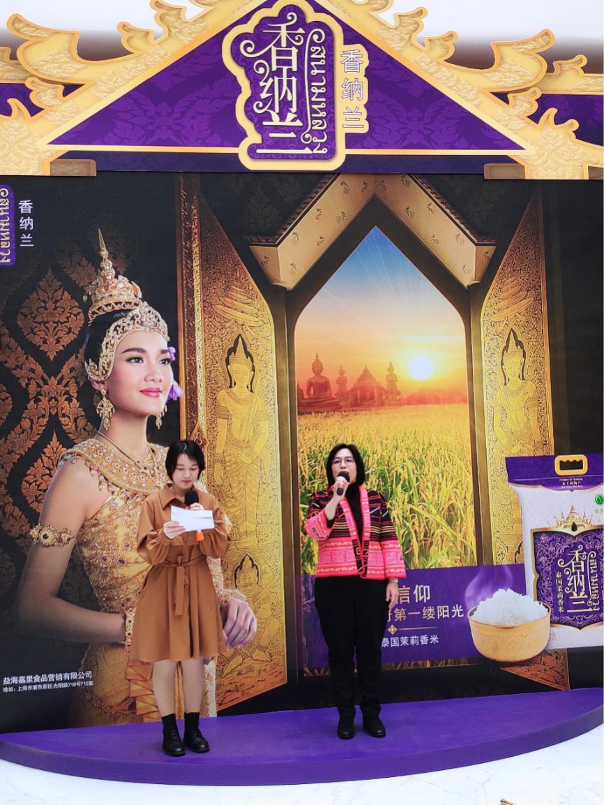 12月7日,香納蘭“泰”好吃樂,陽光之旅/益+秀新米品鑒展示活動在上海金龍魚大廈隆重舉行,益海嘉里集團特邀泰王國駐上??傤I(lǐng)事館農(nóng)業(yè)處領(lǐng)事吳佩賢女士參加活動并致辭助力香納蘭,本次活動形式豐富多彩,不僅有干貨十足的泰米知識介紹和專業(yè)泰廚現(xiàn)場教學(xué),還有美味的泰米試吃和有趣的互動游戲。與此同時,本次活動將通過線上直播擴大傳播范圍,讓更多消費者了解香納蘭品牌的同時也能感受到獨特的泰國文化魅力。為了讓中國消費者更進一步了解泰國茉莉香米在泰國人民心目中的地位,泰國領(lǐng)事吳佩賢女士在直播間和粉絲做了短暫的分享。