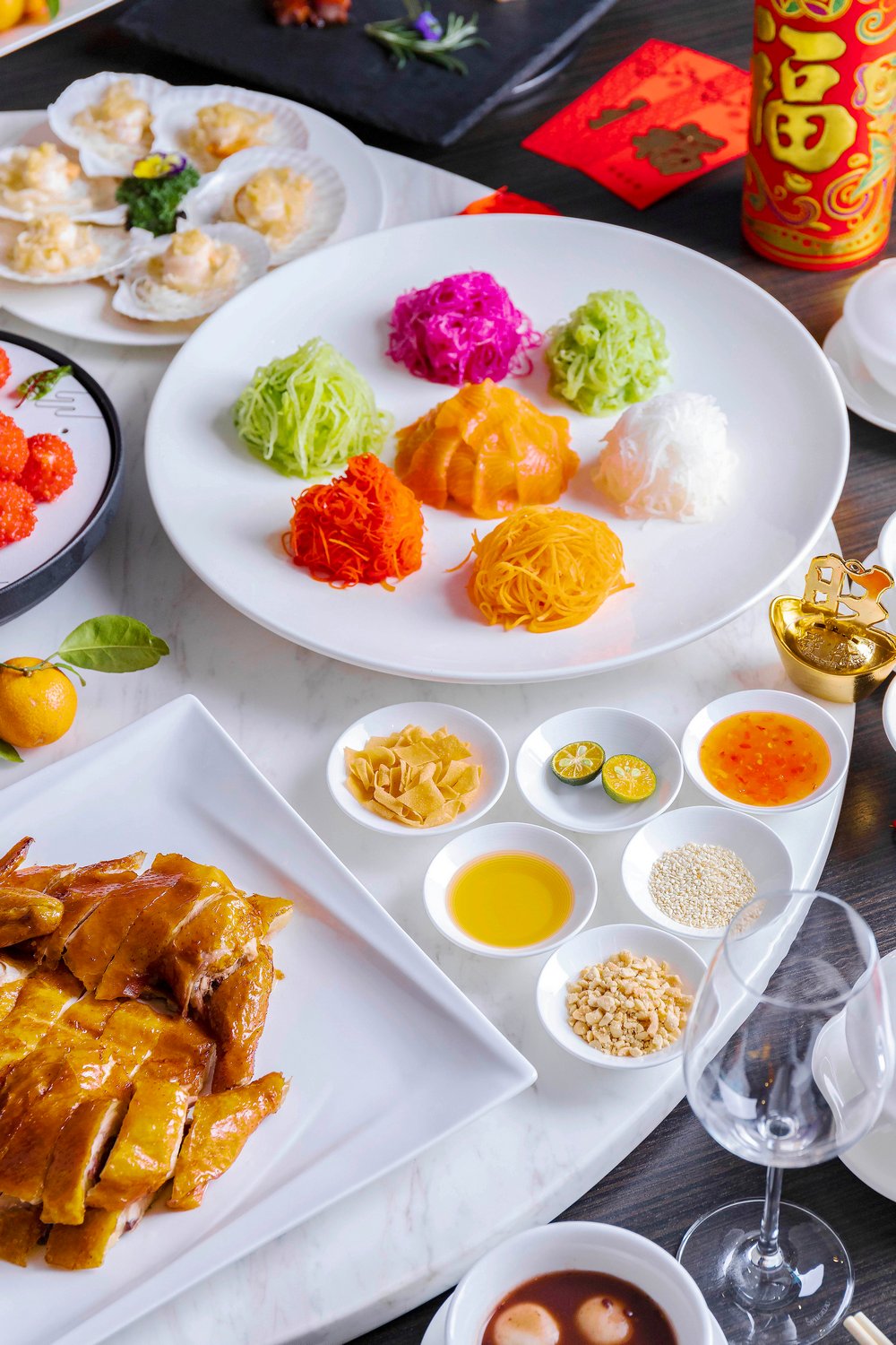 除了兩款福袋,另外還有5款年夜飯可以選擇,“迎春接福宴”、“闔家團(tuán)圓宴”、“萬事如意宴”、“花開富貴宴”以及“金玉滿堂宴”。金茂深圳JW萬豪酒店中餐廳主廚劉師傅精心設(shè)計(jì)的賀歲菜肴除了擺盤講究之外,亦道道有講究。如:寓意“風(fēng)生水起”的三文魚生撈起,以三文魚生為主要食材,配以六款色彩繽紛的蔬菜絲,享用時眾賓客齊齊用筷子高高撈起,在開席即可討個“越撈越旺”的好彩頭!還有上菜時冒出“仙氣”的爆汁紅顏妃子笑,寓意“吉祥如意”、寓意“牛氣沖天”的香芹腰果牛肉粒、“年年有余”的清蒸老虎斑、“五谷豐登”的總廚鮑汁炒飯等多款吉祥菜式。