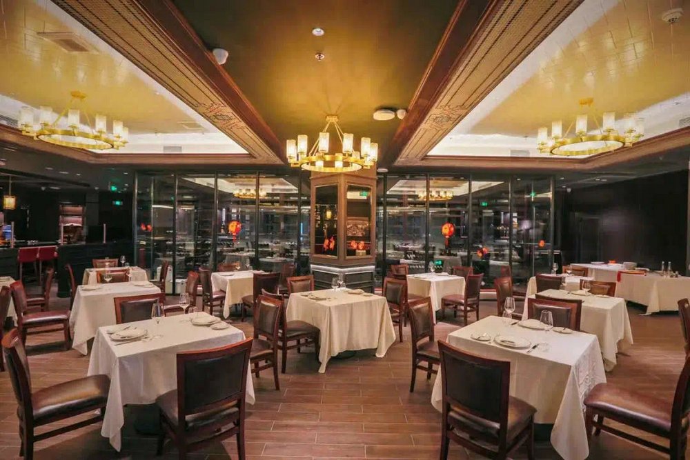 推開大門,經(jīng)典又熟悉的美式風格撲面而來。溫暖的胡桃木地板、用于營造私密氛圍的對點投射燈光、懸掛著白玉石吊燈的瓷磚天花板、豐富的藏酒、自由悠揚的爵士樂、熱情周到的專業(yè)服務(wù)……可以說,完美傳承了沃夫?qū)回炓詠淼募~約爵士格調(diào)與美好用餐體驗。