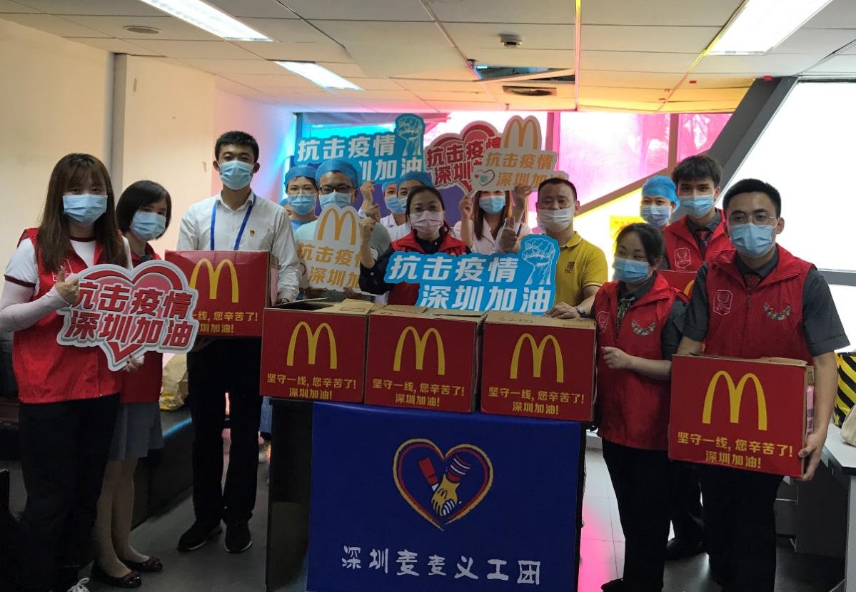 深圳麥當勞“麥麥義工團”小伙伴們?yōu)榭挂咭痪€醫(yī)護人員和工作送去愛心餐食