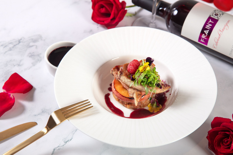 共譜濃情蜜意之夜,怎少得了甜品加乘。酒店餅房行政總廚趙偉以當季時令水果搭配馥郁絲滑的上等巧克力等食材,精心呈獻包括覆盆子蜜桃蛋糕、草莓荔枝蛋糕、咖啡白巧克力櫻桃蛋糕、玫瑰花茶紅酒布丁杯等8款作品。此外,位上菜品新增香煎鵝肝配紅酒焦糖蘋果和藍莓紅酒汁及中式牛奶燉花膠糖水,中西風味相輔相成,都將成就獨特的美味記憶。當天現(xiàn)場將會有小提琴手駐場演奏,妙音悅耳,為甜蜜之夜增添更多柔情。