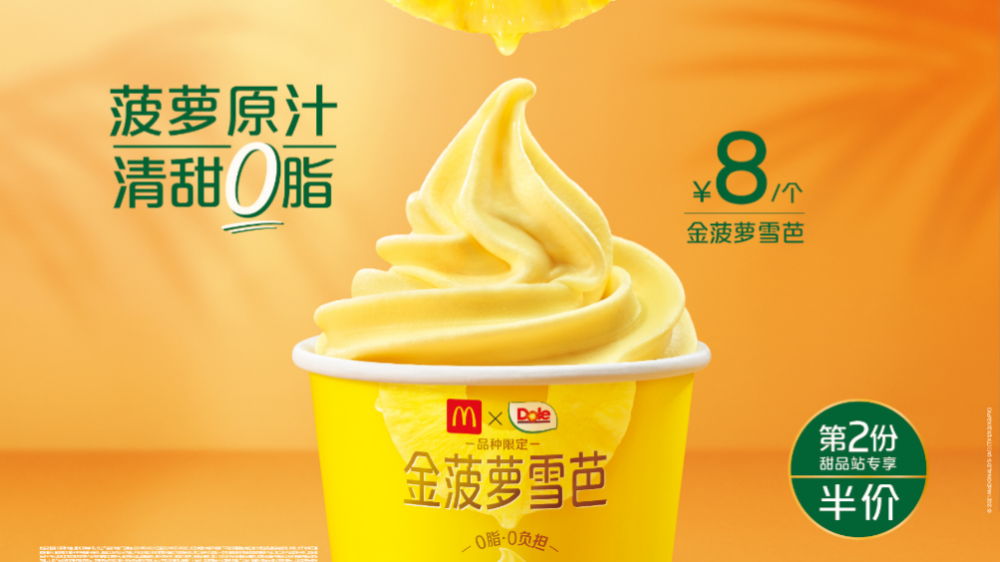 麥當勞中國推出金菠蘿雪芭 零脂肪提供更多輕食選擇