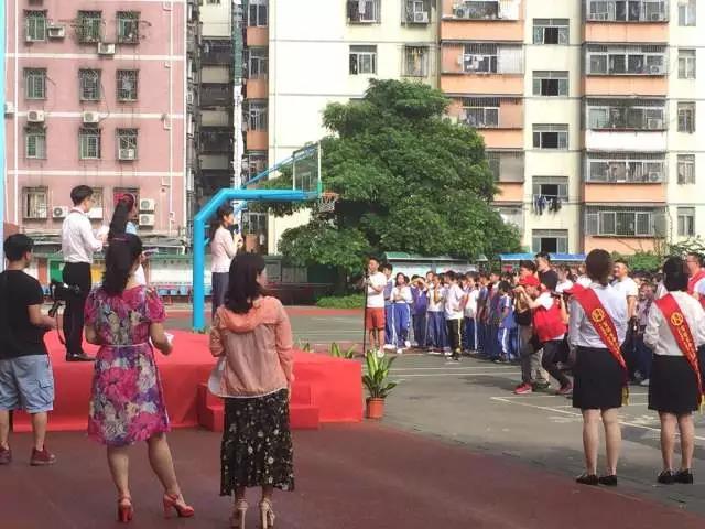 啟動儀式開始之后,一位穿著T恤的高年級男生突然“沖上”舞臺跳起街舞,高難度的動作配上充滿節(jié)奏感的音樂,吸引了相當多的目光。站在后面的孩子踮著腳,甚至跳起來看,嘴里哇哇的驚呼著。深圳關(guān)愛辦副主任華榮及其他領(lǐng)導見狀,決定蹲下來,給孩子們一個更好的觀看視野。