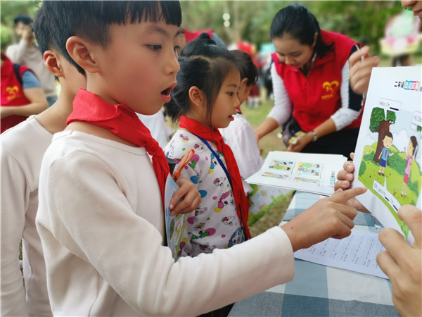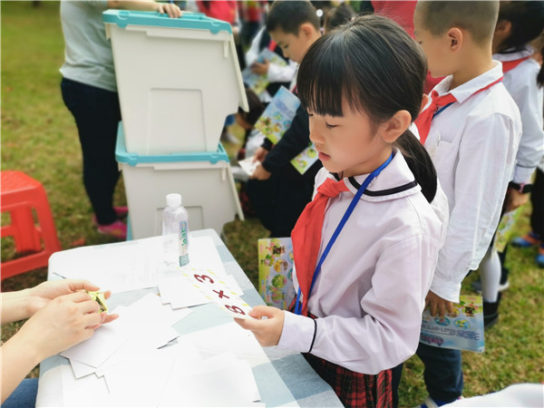 據(jù)悉,本次活動(dòng)以闖關(guān)的形式,每年級(jí)各分10個(gè)關(guān)卡,每闖一關(guān)就獲得一個(gè)能量動(dòng)物或者能量植物填補(bǔ)闖關(guān)卡的空白,各年級(jí)的學(xué)生需要在半小時(shí)內(nèi)將闖關(guān)卡的空白處填滿(mǎn),才算闖關(guān)成功,獲得有校長(zhǎng)贈(zèng)言的書(shū)籍一本。關(guān)卡的設(shè)置以語(yǔ)文、數(shù)學(xué)和英語(yǔ)三個(gè)科別組成,其中,最受孩子們青睞的要數(shù)“筆架說(shuō)話”這個(gè)關(guān)卡,孩子們把自己相像成筆架山的一員,然后介紹自己,有同學(xué)說(shuō):“我是筆架山的大樹(shù),我可以給大家遮蔭,讓大家不用被太陽(yáng)曬到。”、“我是筆架山的石頭,孩子們來(lái)筆架山玩的時(shí)候,可以把我們拼在一起做拼圖。”、“我想成為筆架山的暗綠繡眼鳥(niǎo),就是嘴巴尖尖的,頭上綠綠的,眼睛邊上有點(diǎn)白色的那種,我要站在筆架山的枝頭上盡情歌唱,紅紅的火焰花為我做背景!”......孩子們通過(guò)豐富的相信力,盡情在老師與家長(zhǎng)義工面前展現(xiàn)臨場(chǎng)的表達(dá)能力。