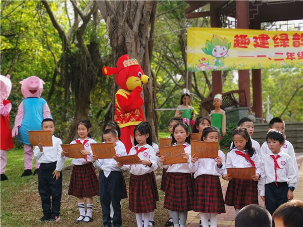 在鳥(niǎo)語(yǔ)相伴下,深圳市學(xué)生文聯(lián)秘書(shū)長(zhǎng)謝晨的講話拉開(kāi)本次活動(dòng)的序幕,他贊揚(yáng)了華新小學(xué)學(xué)生們學(xué)業(yè)上的優(yōu)秀表現(xiàn),肯定本次活動(dòng)寓教于自然的教學(xué)方式,也表達(dá)了多次參加華新小學(xué)的活動(dòng)的喜悅之情。隨后,每個(gè)年級(jí)各準(zhǔn)備了兩個(gè)節(jié)目為現(xiàn)場(chǎng)帶來(lái)歡樂(lè)的氣氛,“綠韻筆架?趣建我的學(xué)習(xí)能量王國(guó)”活動(dòng)正式開(kāi)始,學(xué)生們紛紛往自己年級(jí)的活動(dòng)區(qū)域飛奔而去。