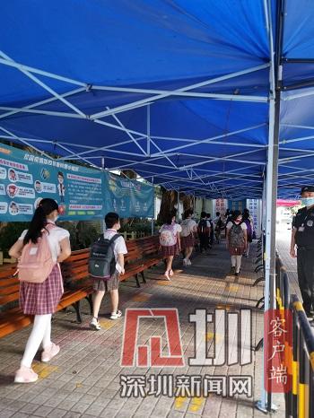 我起了個(gè)大早,高高興興地來(lái)到學(xué)校。在校門口不遠(yuǎn)處,我看見(jiàn)一排排金色小腳印在望著我笑,好像在對(duì)我說(shuō):“歡迎你返校!”進(jìn)入校園后,熟悉的林蔭道下多了許多的大帳篷,帳篷中間有一個(gè)巨大的測(cè)溫箱。走過(guò)測(cè)溫箱,一排感應(yīng)免洗洗手液站得筆直,正在招呼我們趕緊洗手消毒。因?yàn)樾鹿谝咔?,我們的校園不一樣了,多了許多守護(hù)我們健康的安全小衛(wèi)士。