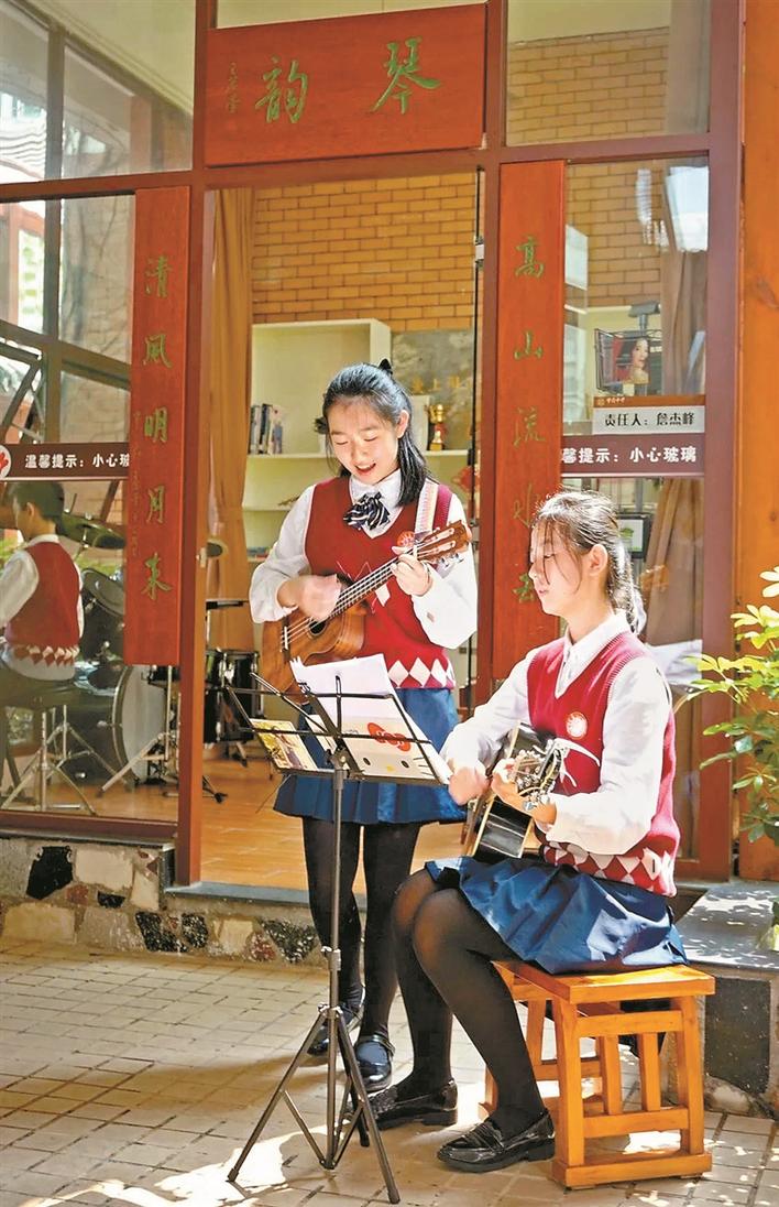 校園一角的“樂·舞臺”上擺放著一架鋼琴,陳鐵成校長說:“在沒有疫情的時候,這架鋼琴是不上鎖的,任何老師或?qū)W生都可以彈奏。同樣開放的還有琴韻閣、清心閣,不要擔心學(xué)生會破壞這些東西,美自然地呈現(xiàn)在學(xué)生們面前,自然地發(fā)生,真正的教育就是在這樣的情境中發(fā)生的。”