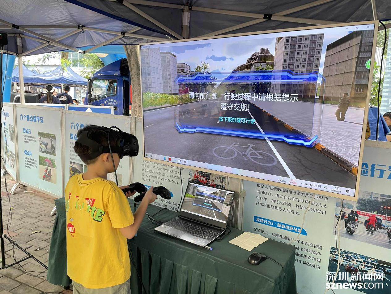 居民和小朋友們戴上VR眼鏡體驗(yàn)電動(dòng)車(chē)騎行時(shí)的風(fēng)險(xiǎn)